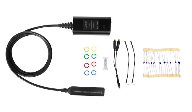 The SAP5000D is our highest performing active differential probe kit providing up to 5 GHz of bandwidth and low noise for detailed signal analysis. Its high input resistance and low input capacitance can ensure that the load introduced by the measurement system is minimized. SAP5000D active probe utilizes the SAPBus interface, making it suitable for oscilloscopes including the SDS5000X, SDS6000A and SDS7000A series. These probes do not need an additional external power supply and are automatically recognized by the oscilloscope.