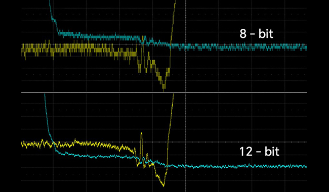 The sampling rate of 20 GSa/s eliminates signal distortion. With a long storage depth of up to 2 Gpts/ch, capture complete signal sequences for up to 50 millisec at max sampling rate without any gaps. Utilize search and navigate or history tools to analyze the entire stored trace. Each sample utilizes the 12-bit ADC, limiting the quantization error, which can help engineers to observe the details of the waveform clearly and measure the waveform accurately.
