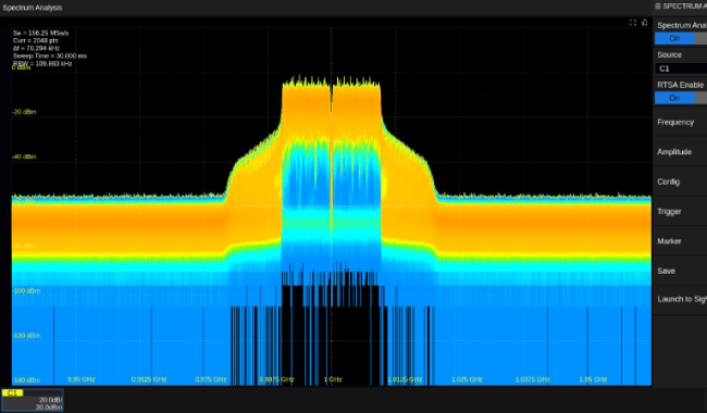 Equipped with RTSA and digital down-conversion (DDC) technologies, the SDS7000A supports up to 1 GHz Real-Time analysis bandwidth. Advanced display modes include density plots, spectrum monitoring, and 3D visualizations. Compared to traditional superheterodyne spectrum analyzers, the SDS7000A offers higher bandwidth and faster signal acquisition — ideal for capturing transient events in 5G NR, 4G LTE, and Wi-Fi.
